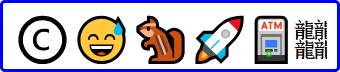 | 以下は EmojiSymbols フォントに収録されている絵文字の例です。当サイトのサーバに置いてあるフォントを使用して表示しています。