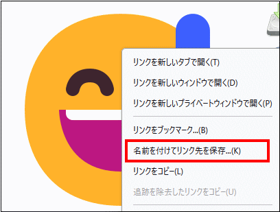本項で使用している画像は,Noto Color Emoji の絵文字の SVG 画像ですが,[画像を新しいタブで開く] ([新しいタブで画像を開く]) 時の表示方法と,SVG 画像のサイズを 640 x 640 に,筆者が変更しています.