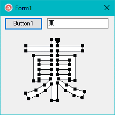 フォントファイルにも,収録している各々の文字のこのようなデータがあります.下図は,あるフォントの「東」という文字の例です.